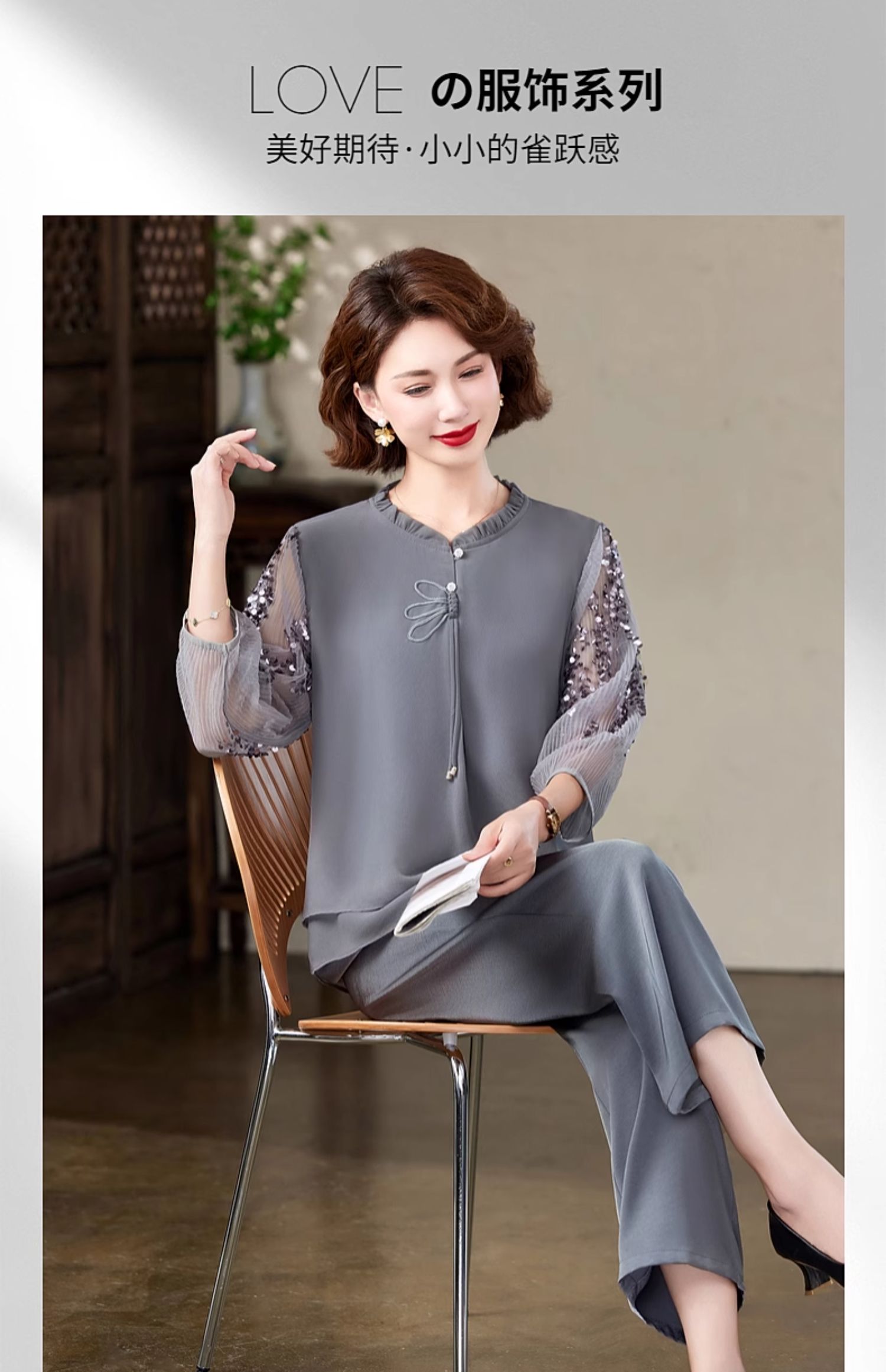 平台首页 > 老年服饰 > 中老年女夏季雪纺阔腿裤两件套母亲节衣服