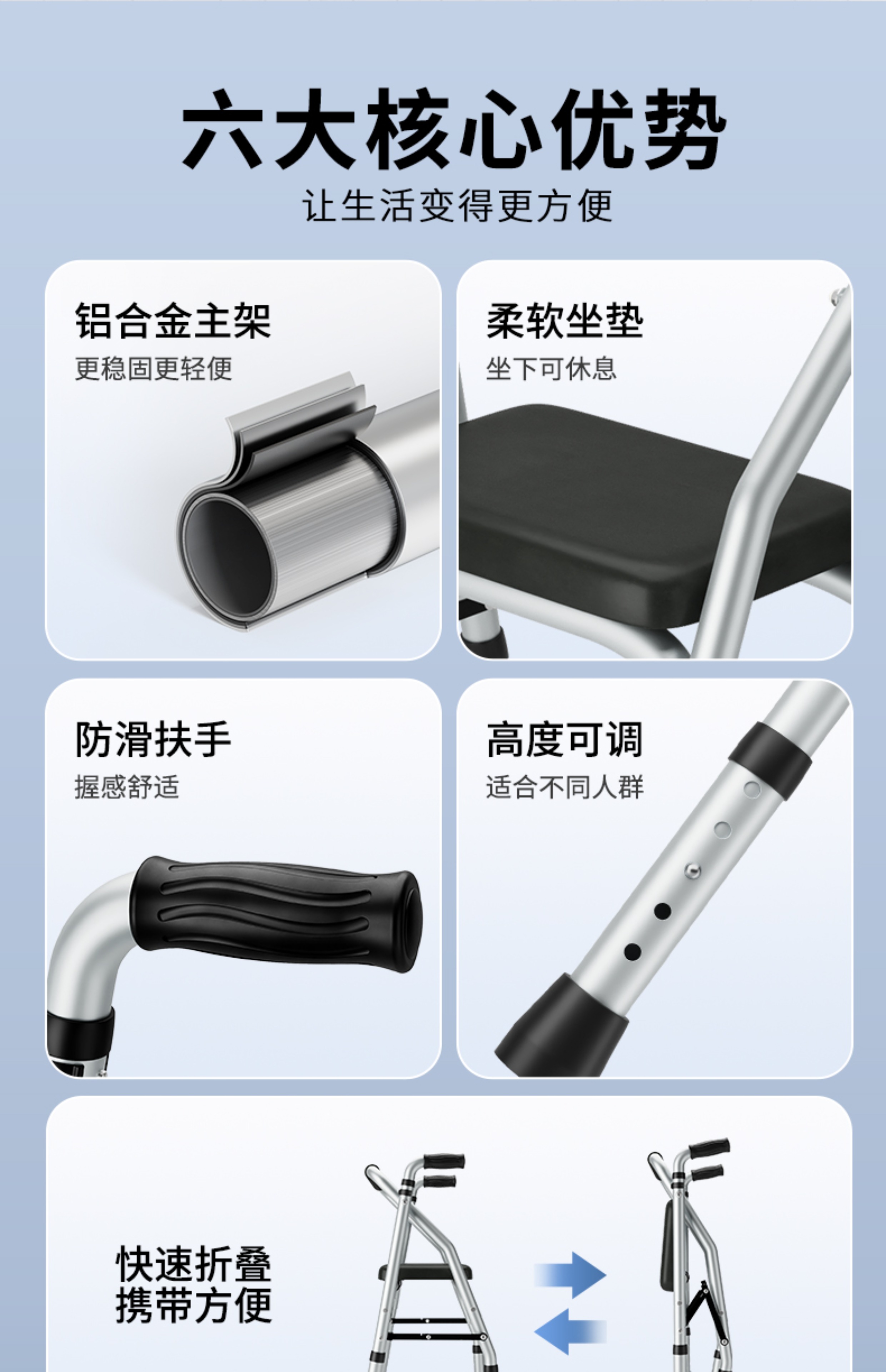 雅德老人手推车折叠轻便老年可推可坐铝合金助步车代步专用助步器